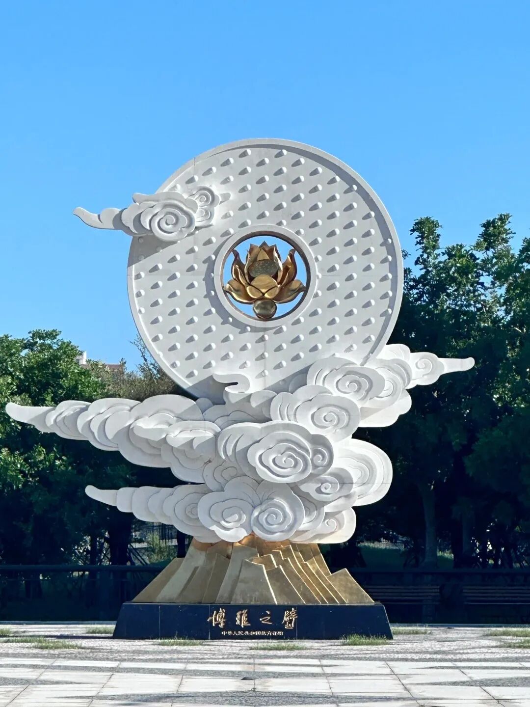 广场上的“盛世莲花”雕塑和周边的优美环境,