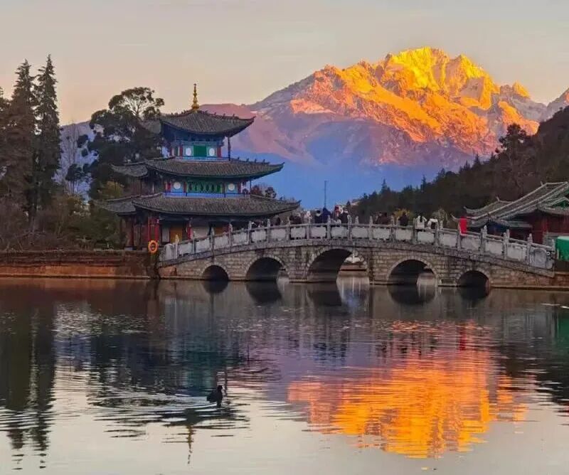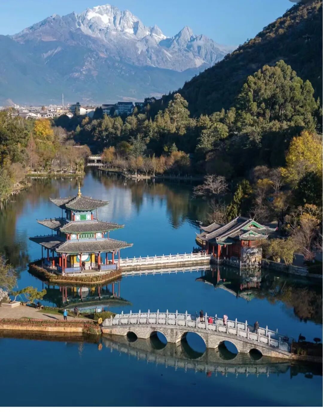 早餐后,游览雪山倒影公园【丽江黑龙潭公园】,黑龙潭(又名玉泉公园)始建于乾隆二年(1737),其后乾隆六十年、光绪十八年均有重修记载。旧名玉泉龙王庙,因获清朝嘉庆、光绪两朝皇帝敕封“龙神”而得名,后改称黑龙潭。位于城北象山脚下,从丽江古城四方街沿经纬纵横的玉河溯流而上,约行一公里有一处晶莹清澈的泉潭,即为中外闻名的黑龙潭。