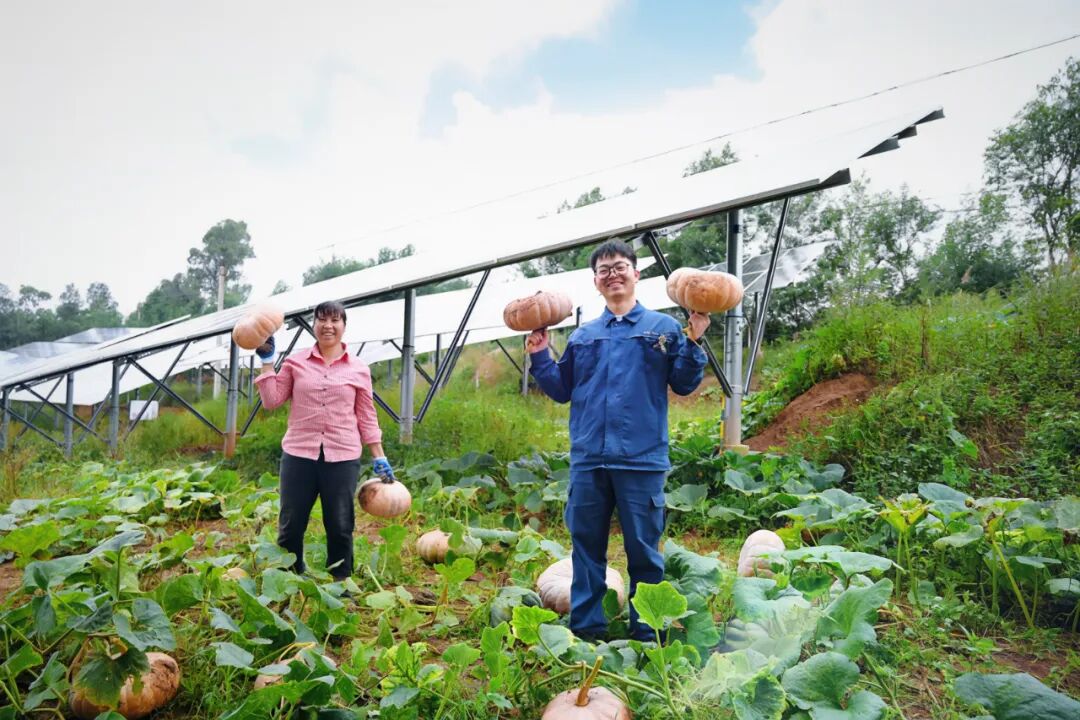 站在楚雄秧田箐光伏电站的观景台远眺,湛蓝的光伏板沿山坡铺展如蓝色海洋,板下长着火红的辣椒、金黄的南瓜,不远处农户们的采摘篮已堆得满满当当。这种“板上发电、板下种菜”的场景,只是云南公司“五光”融合发展体系的一个缩影。