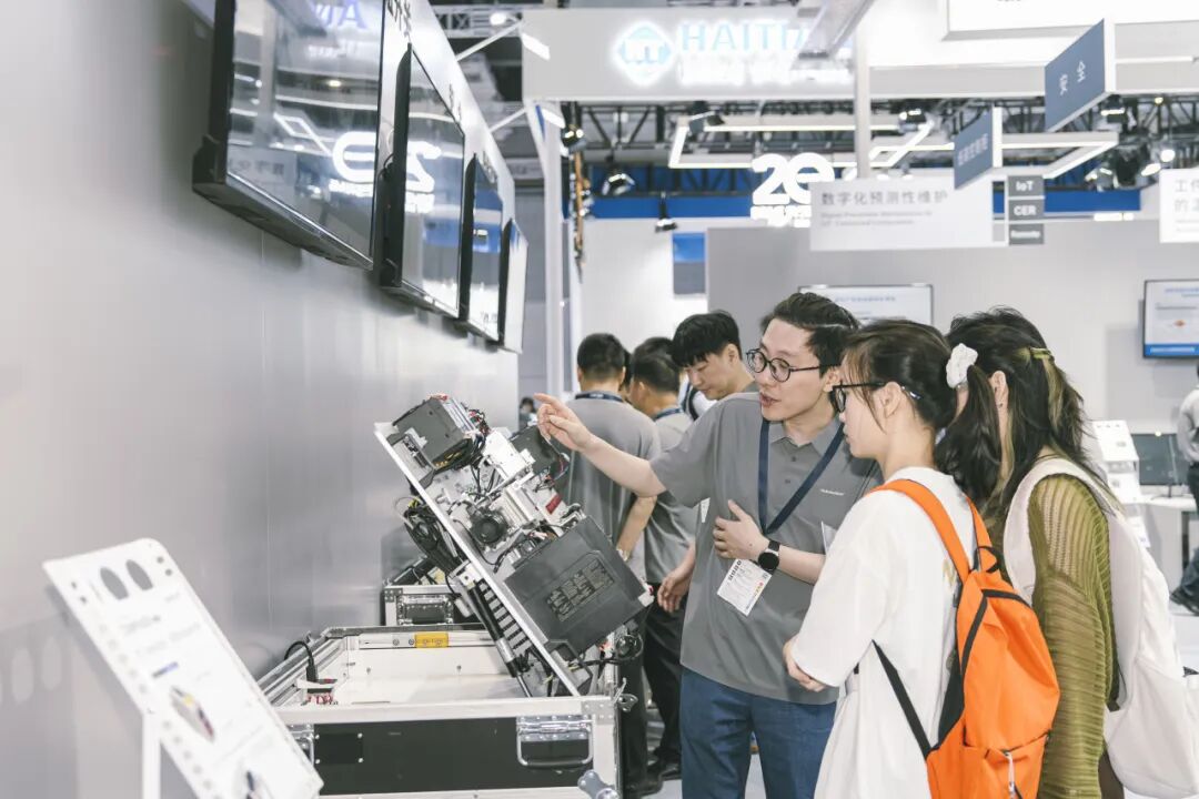 欧姆展台高度还原真实制造现场为设计理念,通过动态产线布局,营造出极具现场感的工厂环境。整个展区通过情景化、案例化的展示方式,生动呈现技术如何应对多品种生产、能耗管理、质量追溯等制造业共性挑战,观众可近距离观察设备运行状态,参与实时交互操作。