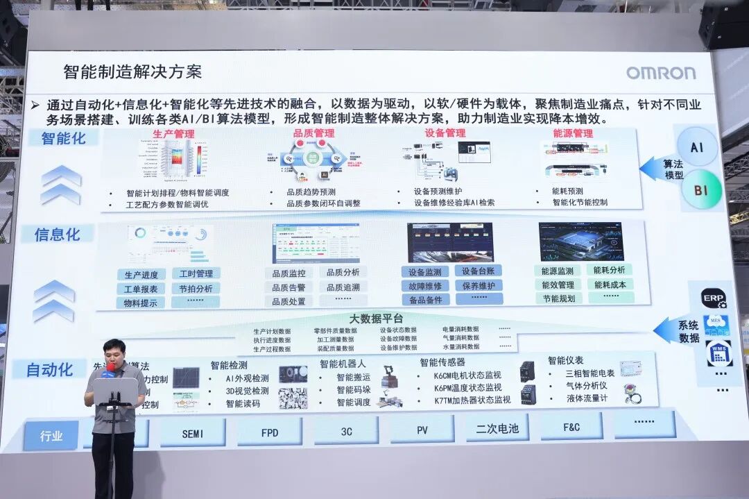 展会期间,欧姆龙围绕围绕【数·智】主题,聚焦“高端化”的未来生产目标进行主题发表,分享来自半导体、汽车、食品日用品、医疗等多个行业的解决方案与应用成果。同时欧姆龙参加了“AI新智造,技术新纪元——人工智能赋能智能制造技术发展论坛”和“PLCopen与智能制造上海研讨会”两场工博会同期的线下论坛活动,携手众多行行业知识伙伴与生态共建者,持续为中国制造业的高端化、数字化的进程注入动能。