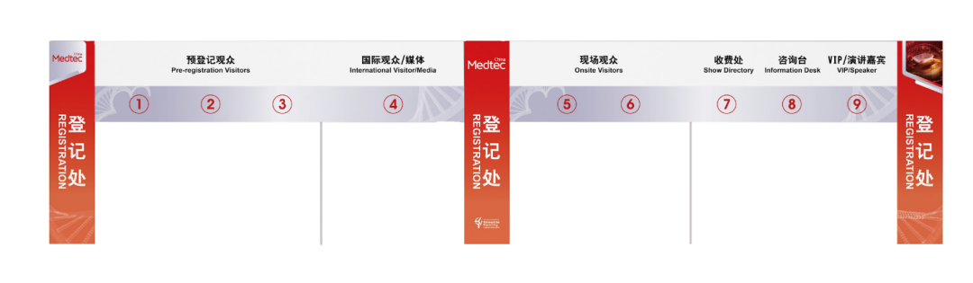 中国港澳台地区及海外观众:需携带有效身份证件至南北广场“国际及港澳台人工柜台”核验身份信息获取身份码。刷身份码过闸机进入展馆后,凭确认码至2号馆南北侧观众服务台登记处通道4领取胸卡或至1号馆南北侧自助打印机自助打印胸卡。