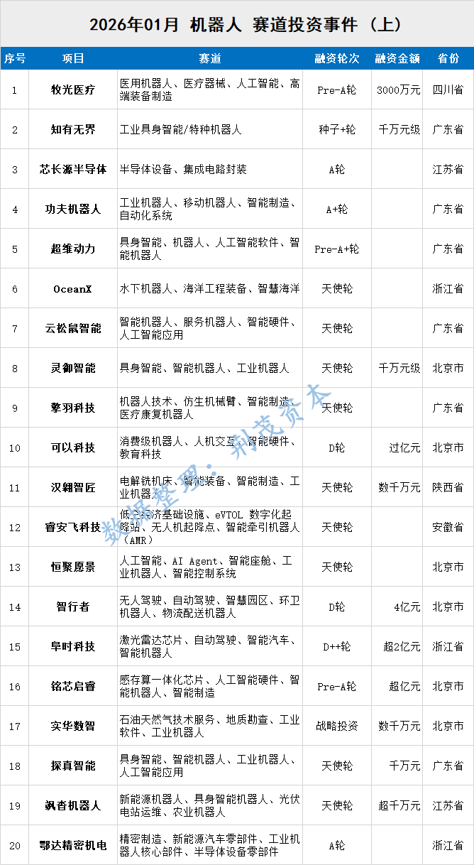 深创投为代表的市场化头部机构,出手精准且具有前瞻性。其领投飒沓机器人,显然是看中了“新能源+机器人”这一交叉赛道的巨大潜力。而北京中发展金种子连续下注超维动力、云松鼠智能两家早期公司,则显示出其对原始技术创新与高校成果转化的坚定支持。