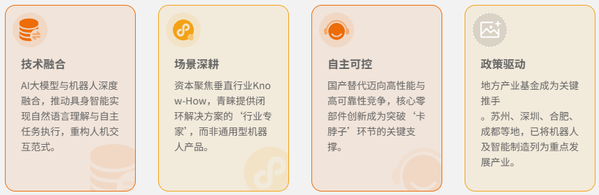 4. 政策驱动:地方产业基金成为关键推手。苏州、深圳、合肥、成都等地,已将机器人及智能制造列为重点发展产业。地方政府引导基金和产业资本深度绑定,不仅提供资金,更导入市场、技术和人才资源,推动形成区域产业集群。