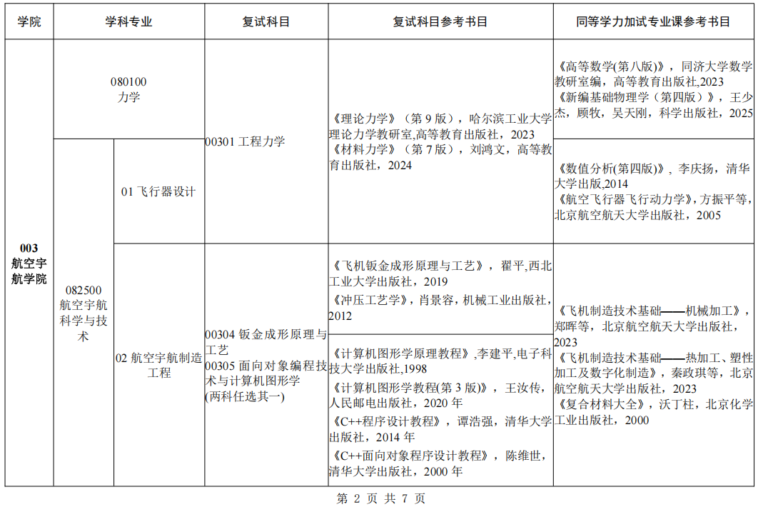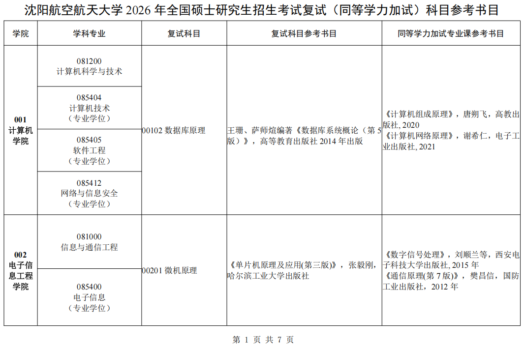 《沈阳航空航天大学2026年全国硕士研究生招生考试复试(同等学力加试)科目参考书目》详细内容如下,后续复试工作请及时关注我校研究生院官网通知。祝大家成功上岸!
