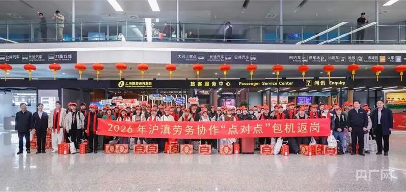 来沪务工劳动者“点对点”返岗活动正式启动。新春首批100名来自云南的劳动者和369名来自湖南的劳动者分别搭乘专机和高铁专列,顺利抵达上海。
