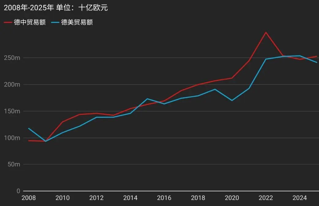 2025年德国与中国、美国的贸易数据 德媒制图