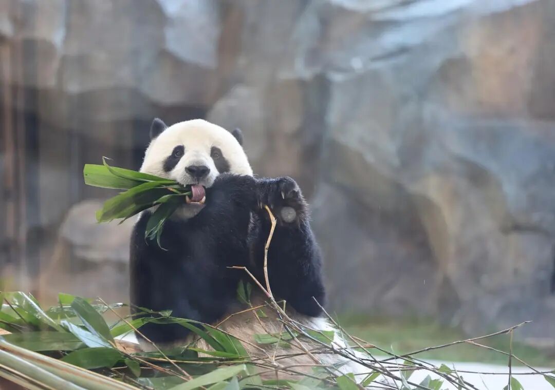 大熊猫“德瑞”在吃新鲜竹子。新华社发(陈星宇 摄)