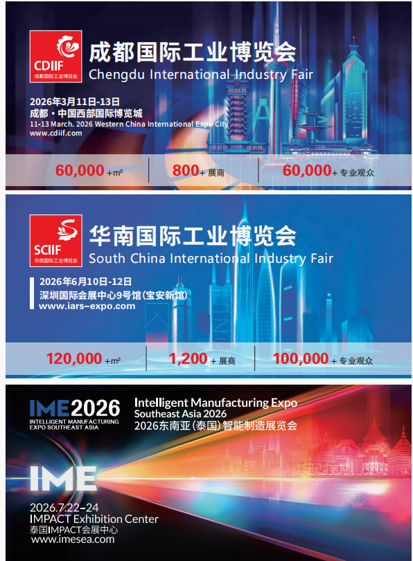 除上海主展外,还可同步参与工博会系列展会,全年布局海内外市场:✅ 2027.4.27-29成都国际工业博览会(西部博览城)✅ 2026.6.10-12 华南国际工业博览会(深圳国际会展中心)✅ 2026.7.22-24 东南亚(泰国)智能制造展览会(泰国 IMPACT 会展中心)