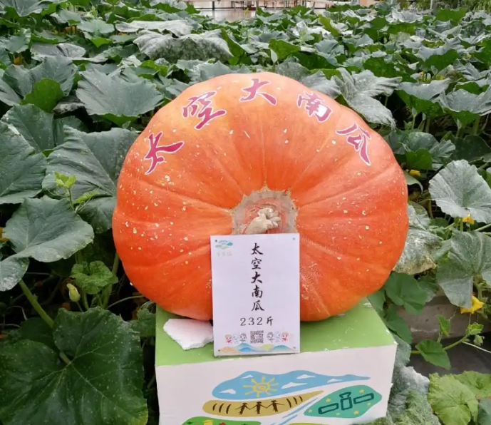 西安中加航天农业科技产业园培育的“太空南瓜”,每个可长到200多公斤。(据西安日报)