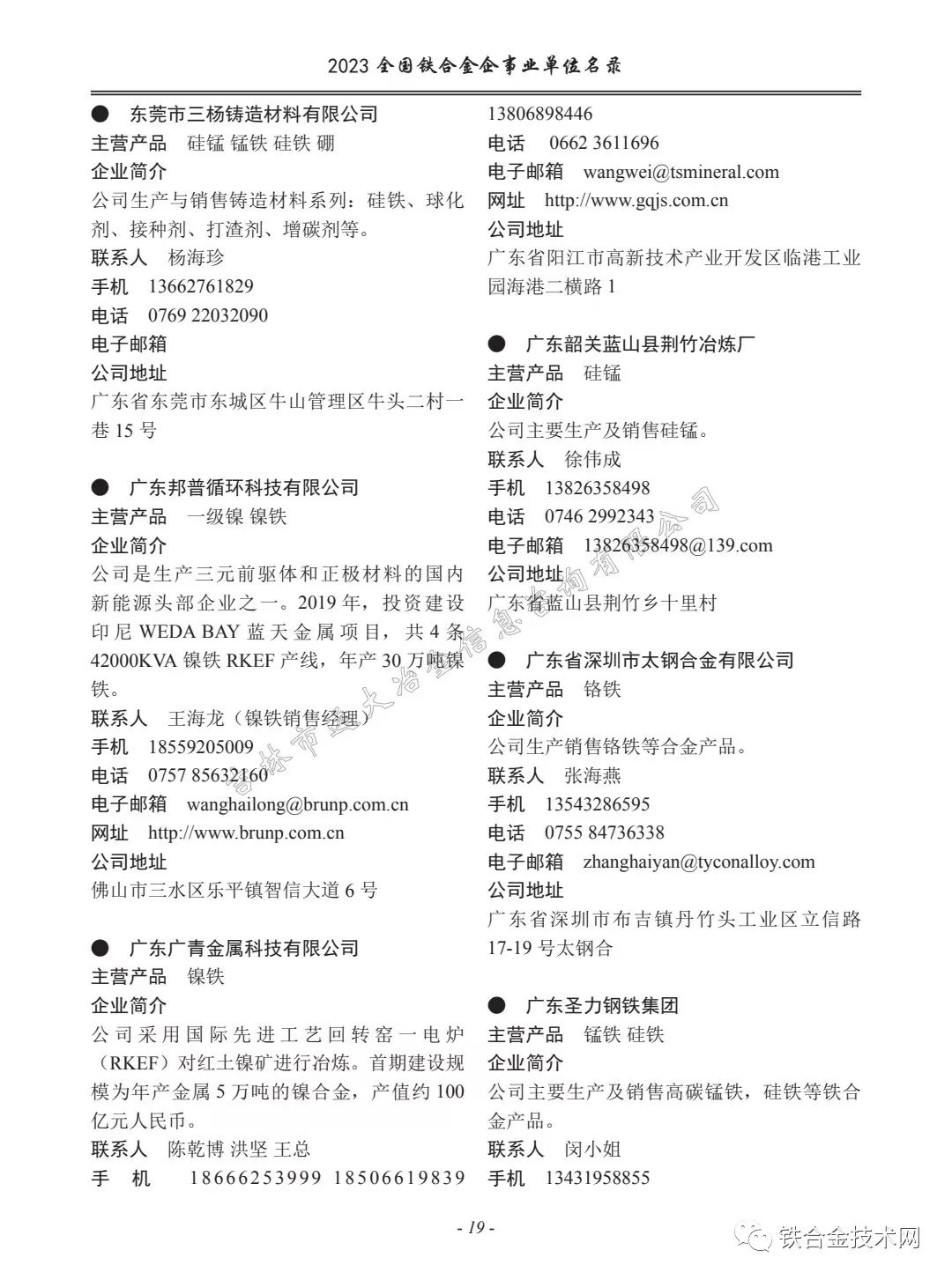 《2023年全国铁合金企事业单位名录》共收集铁合金生产企业约两千家,设备及原辅材料生产厂家百余家,订价300元/册。