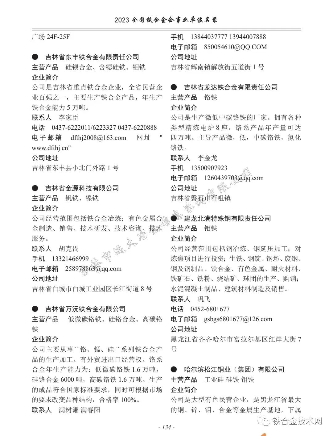 (六)吉林市远大冶金公司独家出版:《2023年全国铁合金企事业单位名录》