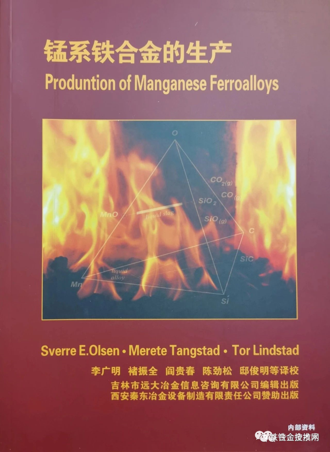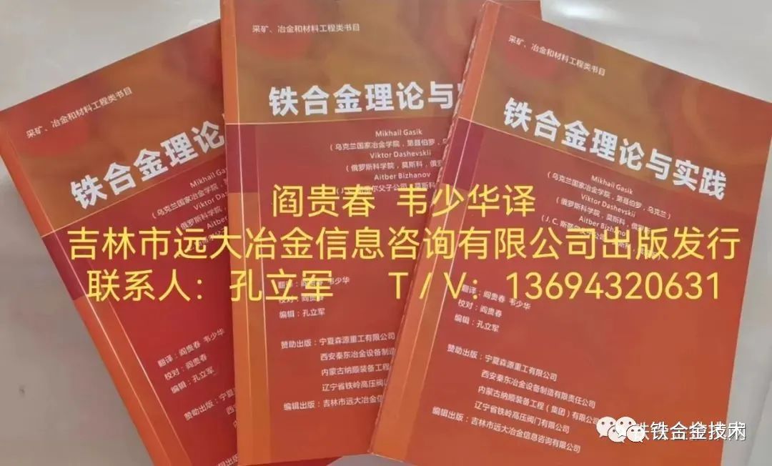 由阎贵春、韦少华专家翻译的俄罗斯新著《铁合金理论与实践》已由吉林市远大冶金信息咨询有限公司独家出版发行,供我国铁合金行业技术人员学习参考。本书责任编辑:孔立军。