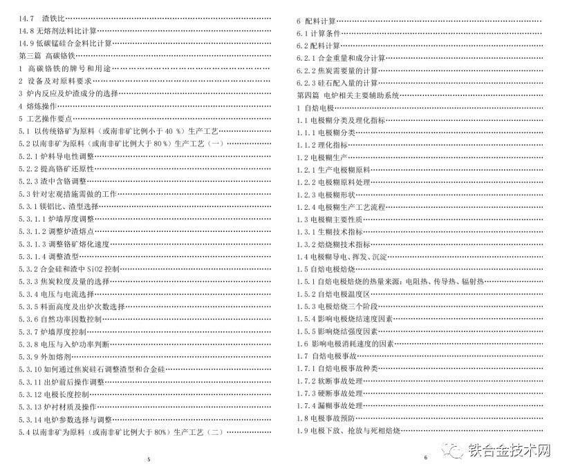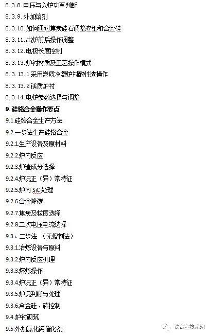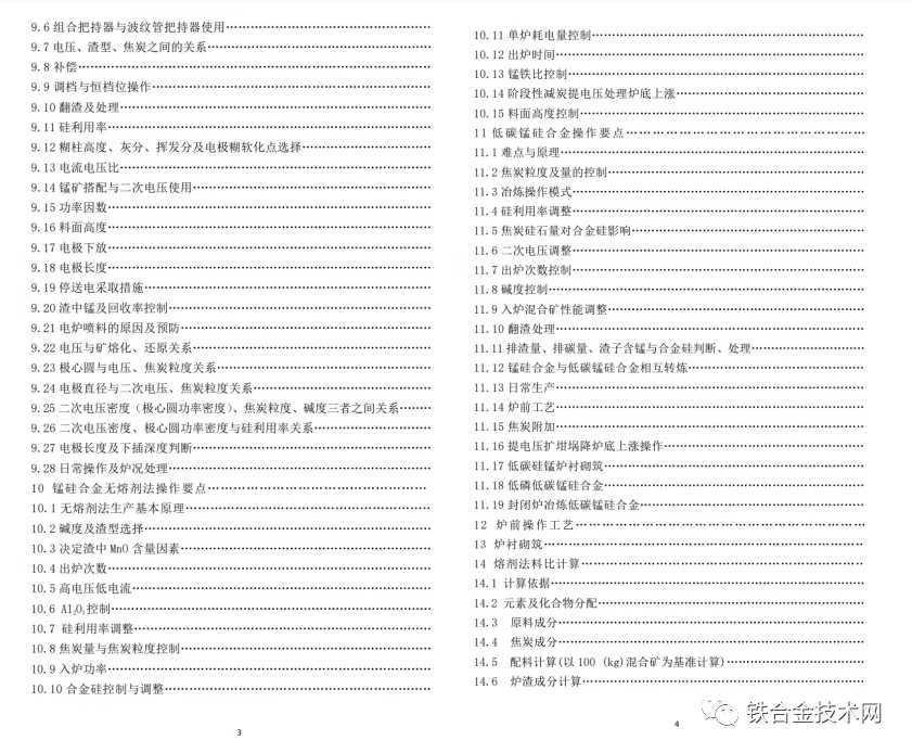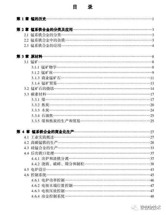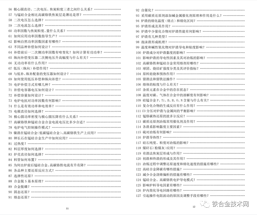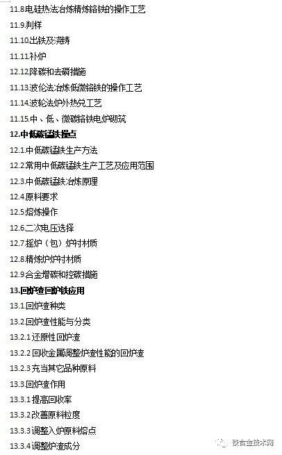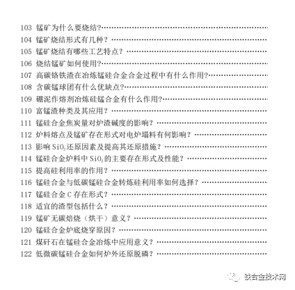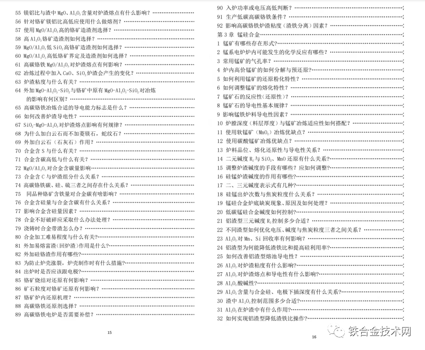 附:《高碳铬铁 锰硅合金冶炼及若干问题简答》目录: