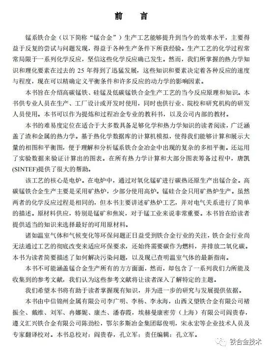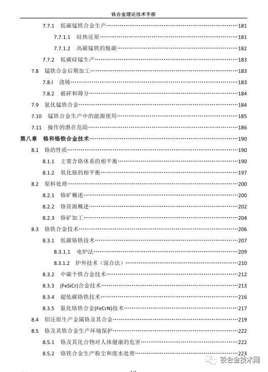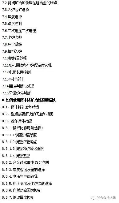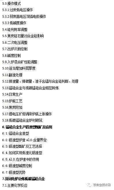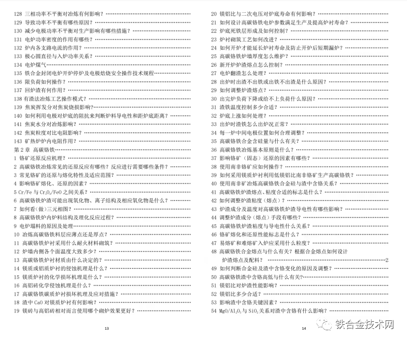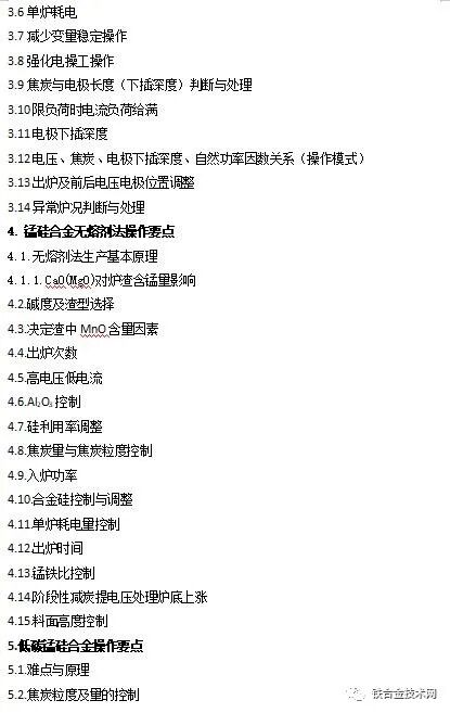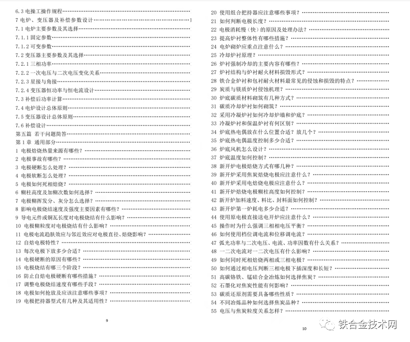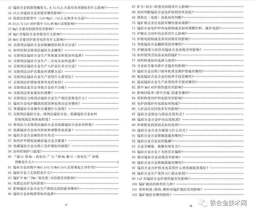 附:《高碳铬铁 锰硅合金冶炼及若干问题简答》目录: