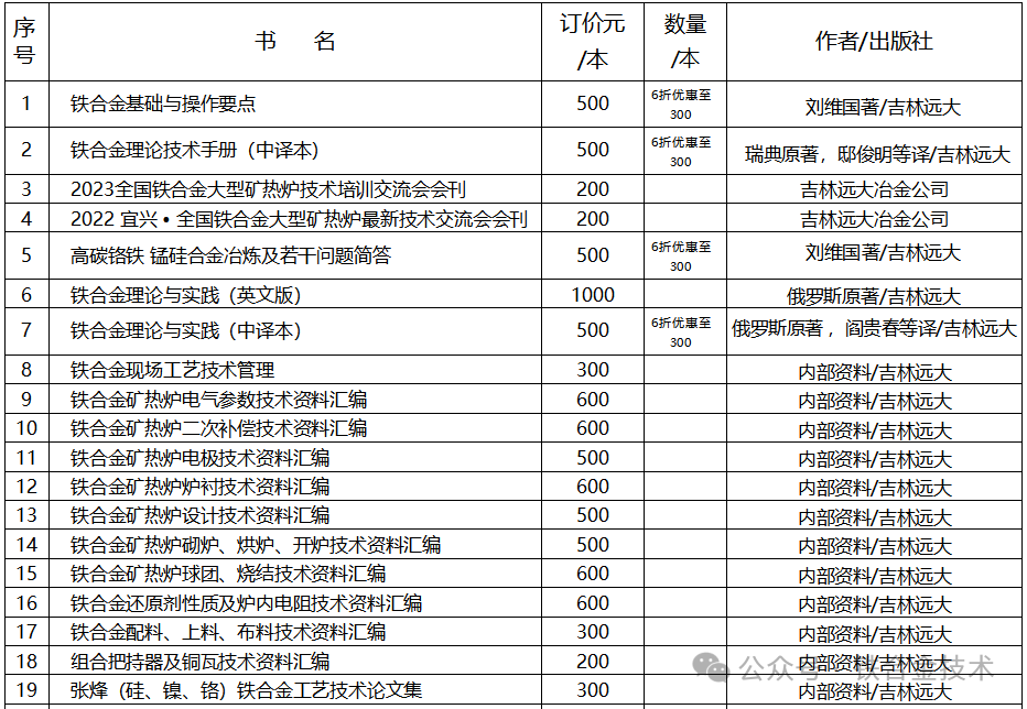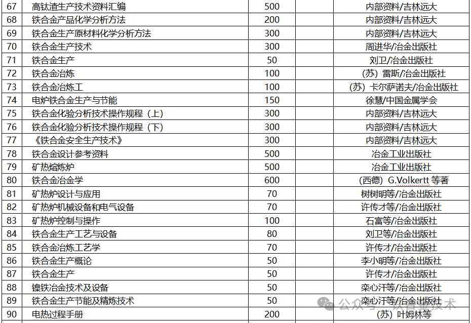 (一)吉林市远大冶金公司独家出版《铁合金基础与操作要点》
