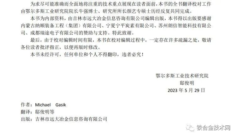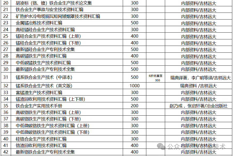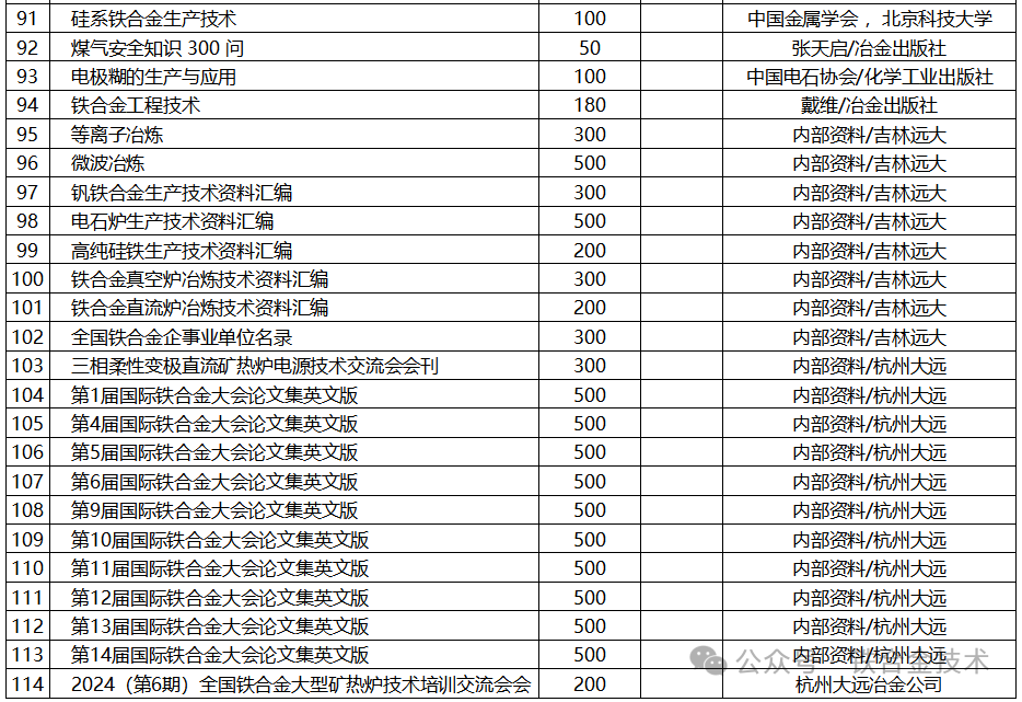欢迎订阅杭州大远冶金信息咨询有限公司最新最全铁合金技术资料