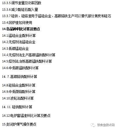 附:《铁合金基础与操作要点》目录