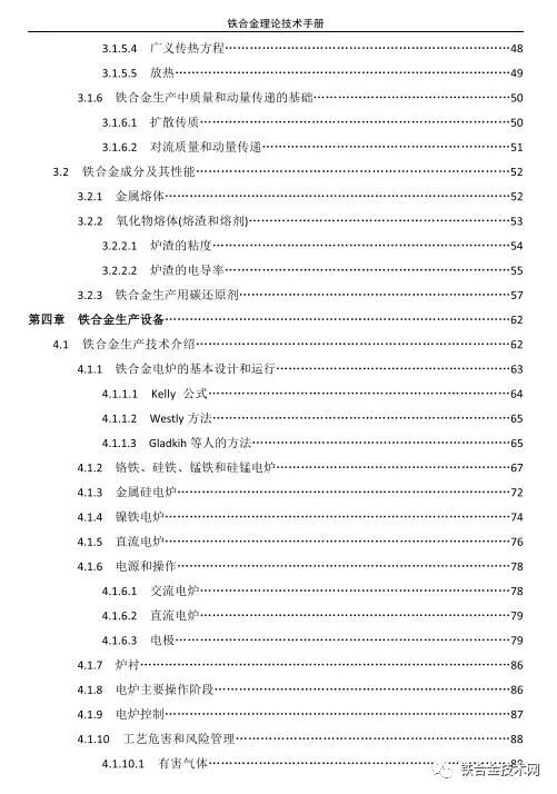 以下为部分铁合金技术资料简介