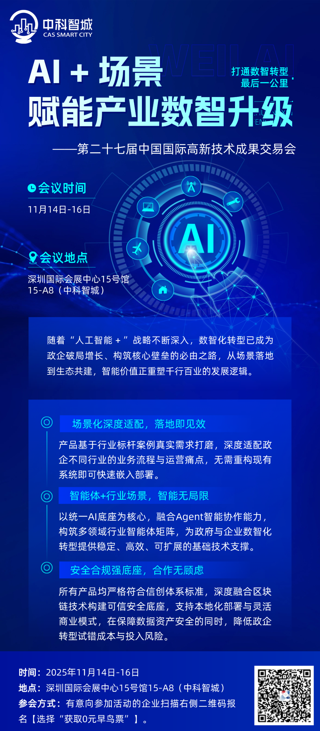 作为本次高交会广东省成果展示的重要组成部分,中科智城在15号馆15-A8展区围绕“AI+场景应用”,携政企数智化转型产品及解决方案重磅亮相!