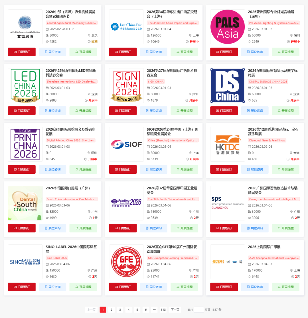 以上信息仅供参考,具体展会信息可能因主办方安排而有所变动。展会最终排期,以实际举办时间为准。如有参会需求,请提前联系主办方确认时间和地点。想要了解更多关于展会的信息以及展会排期,敬请关注展会全知道。