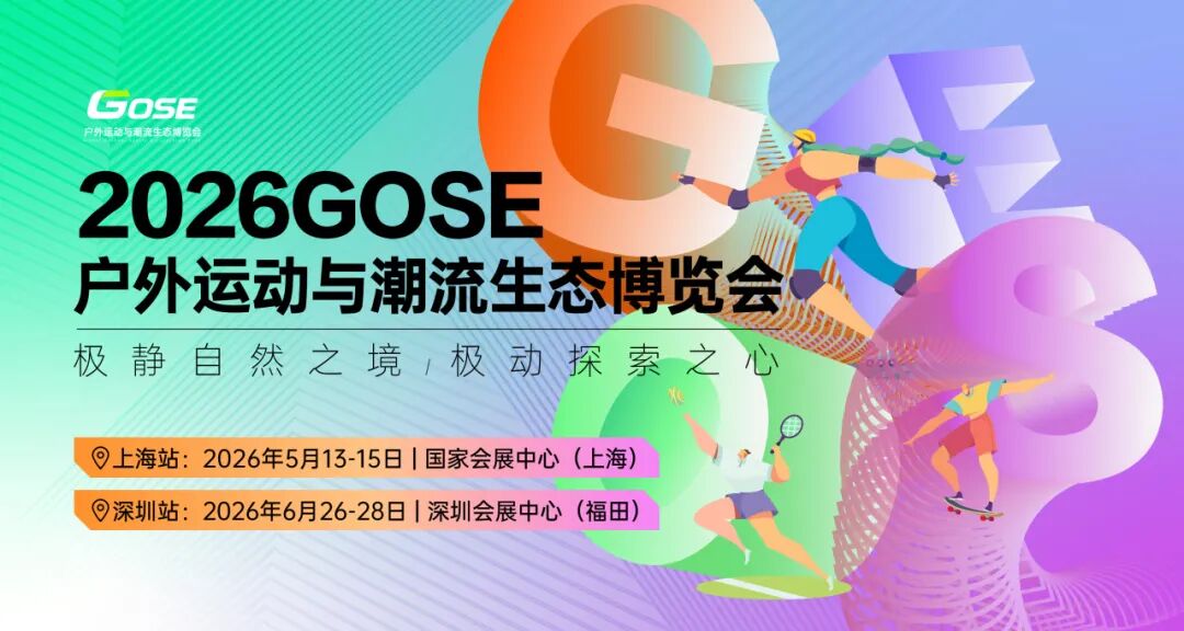 2026 GOSE 户外运动与潮流生态博览会(Global Outdoor Sports&Ecosystem Expo)将于2026年5月13-15日(上海国家会展中心) 及 2026年6月26-28日(深圳福田会展中心)双城联动,以“极境”为核心理念,打造集科技、潮流、探险与生活方式于一体的沉浸式产业生态圈。