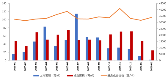 图:广州2025年1月-2026年2月商品住宅成交走势
