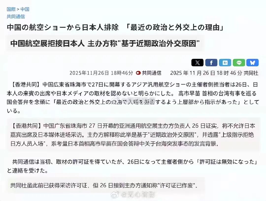 值得注意的是,共同社等日本媒体此前已完成所有手续,顺利拿到了官方颁发的采访许可证,部分记者甚至已做好赴华报道准备,却在开幕前突然收到许可证作废的通知。