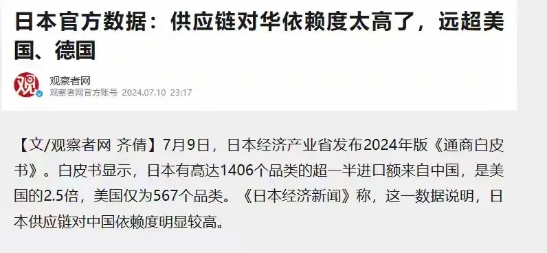 更值得关注的是,日本航空产业对中国关键资源的依赖度极高,中国对日本出口的钨制品占其总进口量的85%。