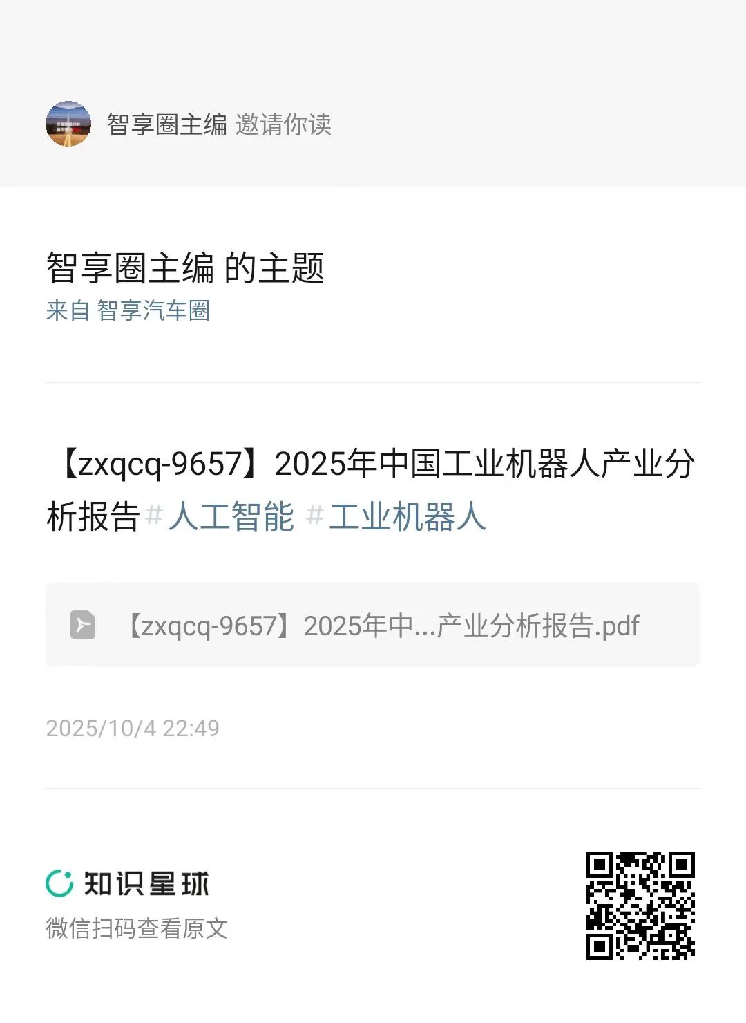 《智享汽车圈》知识星球加入请扫描以下二维码