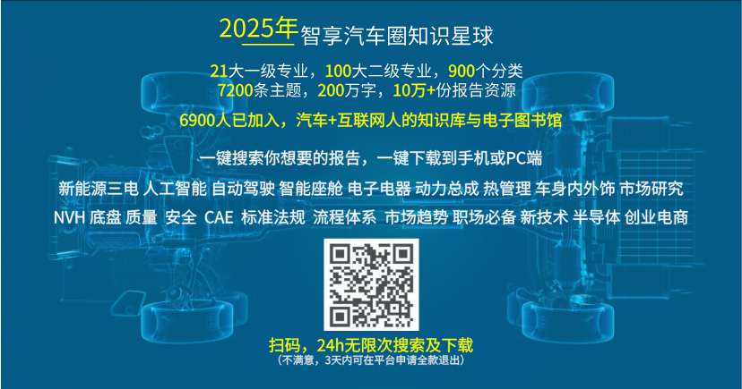 需要批量下载和及时更新最新汽车行业学习资料、技术资料、行业报告的朋友,可以加入我们的《智享汽车圈》知识星球,大量的中外文精品汽车行业资料将会优先分享到知识星球中,加入即可下载全部报告。