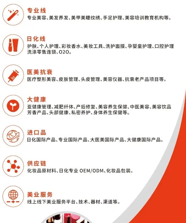 2025第23届昆明国际美业博览会将优化展览品类框架,展示范围涵盖专业线、日化线、医美抗衰、大健康、进口品、口腔美容、供应链、美甲美睫纹绣、微电商领域,达到全产业链覆盖。