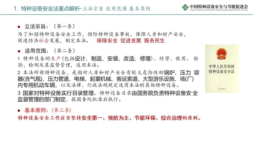 效力层级:法律,特种设备领域的根本大法。