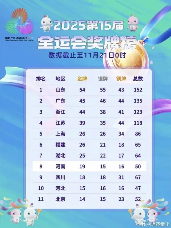 奖牌榜定格!山东五连冠,粤浙同分争雄