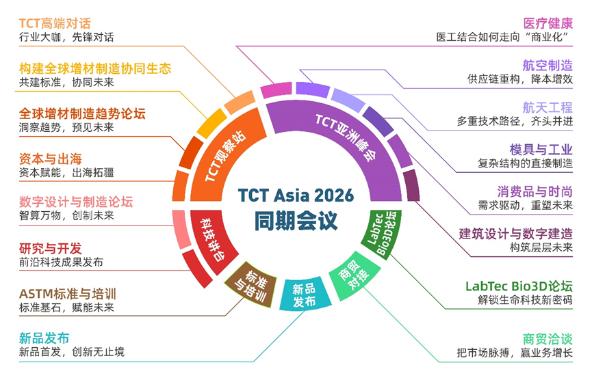 TCT亚洲峰会系列论坛:涵盖医疗健康、模具与工业、消费品与时尚以及航空航天等核心领域,分享最新应用案例、技术趋势与市场机遇,为专业观众提供前沿洞察、实践经验与商业启发。