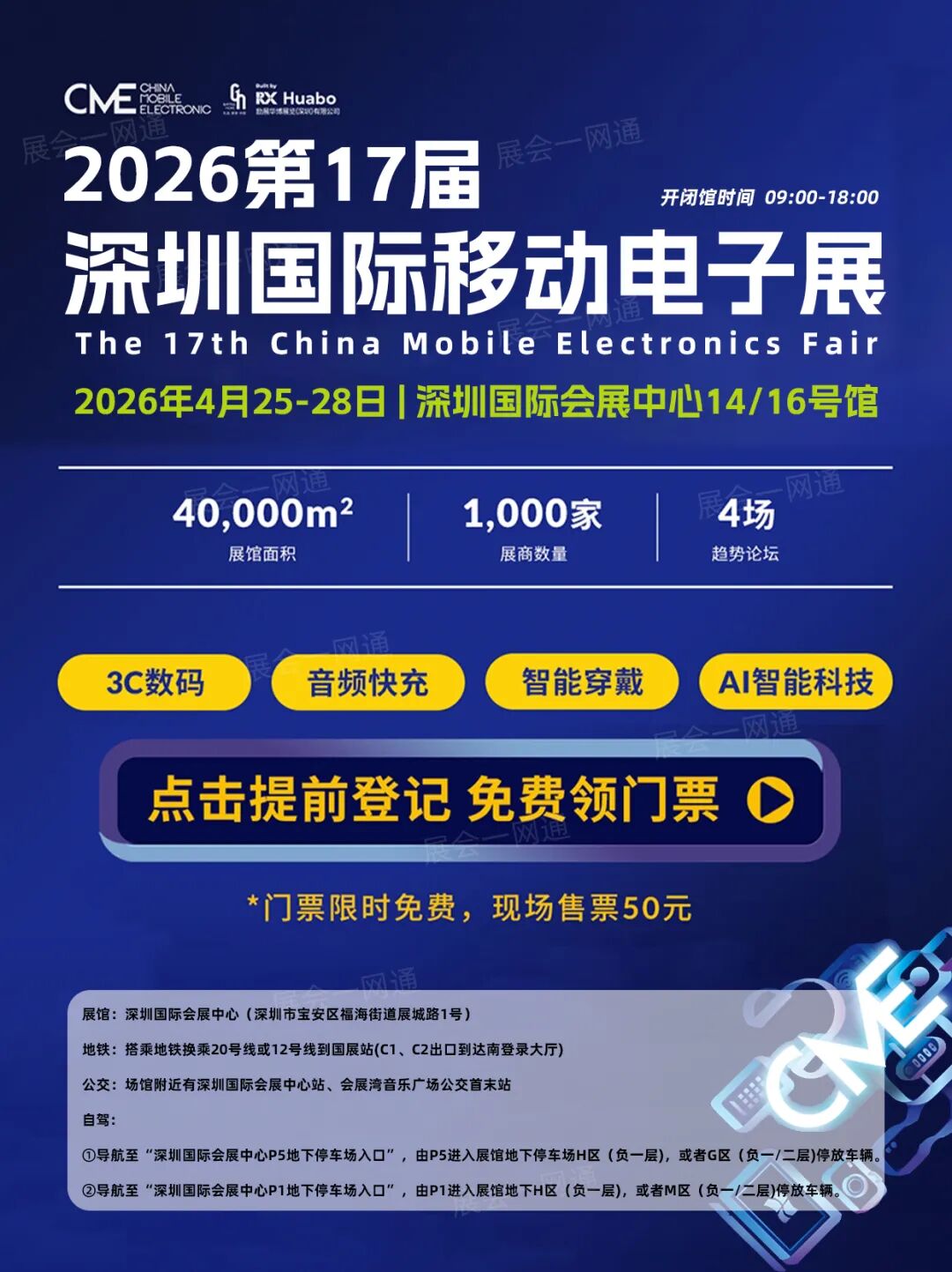展会门票:限时免费预约深圳移动电子展门票,一票逛多展