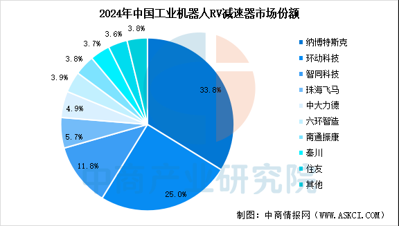 减速器是实现工业机器人精密运动的核心部件,其成本约占整机的30%-35%。根据中商产业研究院发布的《2025-2030年中国减速器市场前景及融资战略咨询报告》,2024年中国减速器行业市场规模约为1447亿元,较上年增长4.3%。分析师预测,2025年市场规模将增至1520亿元,2026年有望达到1672亿元。