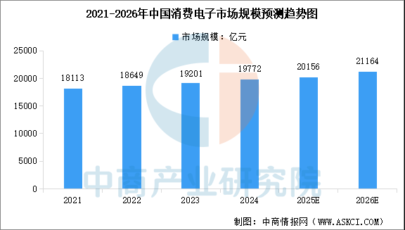 消费电子产品更新换代速度快,对生产线的柔性和精度要求极高,这使其成为小型高精度机器人的重要应用场景。根据中商产业研究院的报告,2024年中国消费电子市场规模约为1.98万亿元,近五年年均复合增长率为2.65%。预计2025年市场规模将达到2.02万亿元,2026年有望增长至2.12万亿元。