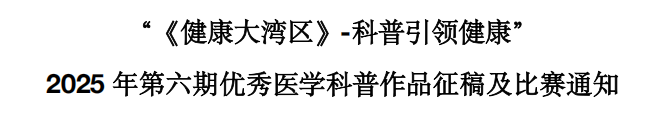 为积极响应“健康中国 2030”规划纲要,推动大湾区健康科普事业的发展,提升公众健康科学素养,广东省肿瘤康复学会特举办以“《健康大湾区》- 科普引领健康 ”为主题的优秀医学健康科普作品征稿及比赛活动。本次大赛旨在通过优质科普创作传播健康知识,倡导健康生活方式,加强重大疾病防治的公众教育,促进大湾区健康科普事业的交流与创新。