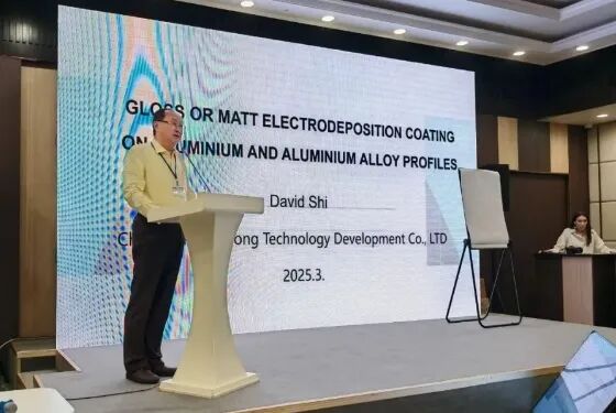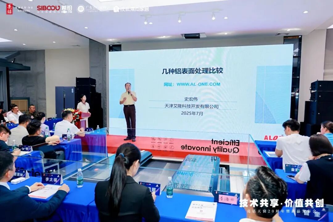 以演讲为桥,“声”入人心。期间,天津艾隆董事长史宏伟带来《铝表面处理的发展与前沿》、《消光电泳的优势》、《几种铝表面处理比较》、《GLOSS OR MATT ELECTRODEPOSITION COATING ON ALUMINIUM AND ALUMINIUM ALLOY PROFILES》等系列主题演讲,为行业传递前沿技术理念,赋能产业高质量发展。