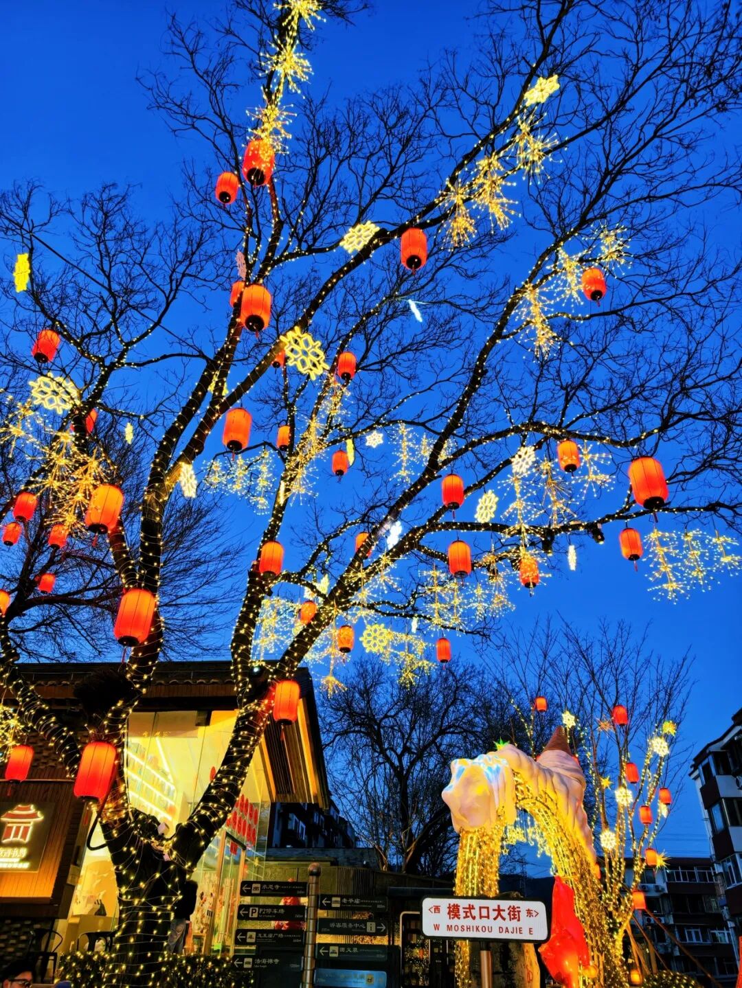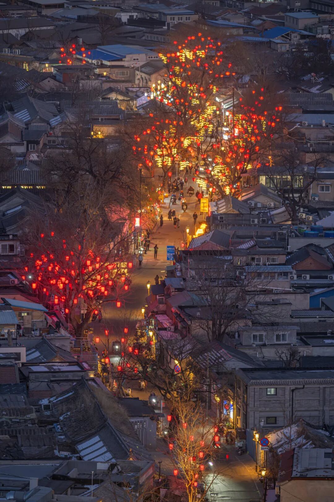 下雪时没有拍到灯笼点亮一直有点遗憾,又一次来到驼铃古道,夜色微暗,整条街的灯笼一瞬间点亮,暖光的光洒在青砖灰瓦上,感受独属于老北京的热闹又安详的年味儿。
