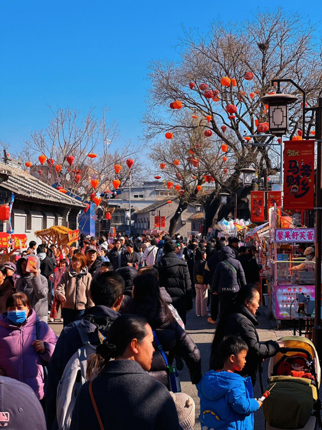 大年初三,陪家人来模式口大街(驼铃古道)庙会溜达溜达。整条模式口大街从西口到东口大约1000多米长,街道两边摆满了卖小吃和小玩意儿的摊位,热闹非凡,充满着人间烟火气🍜