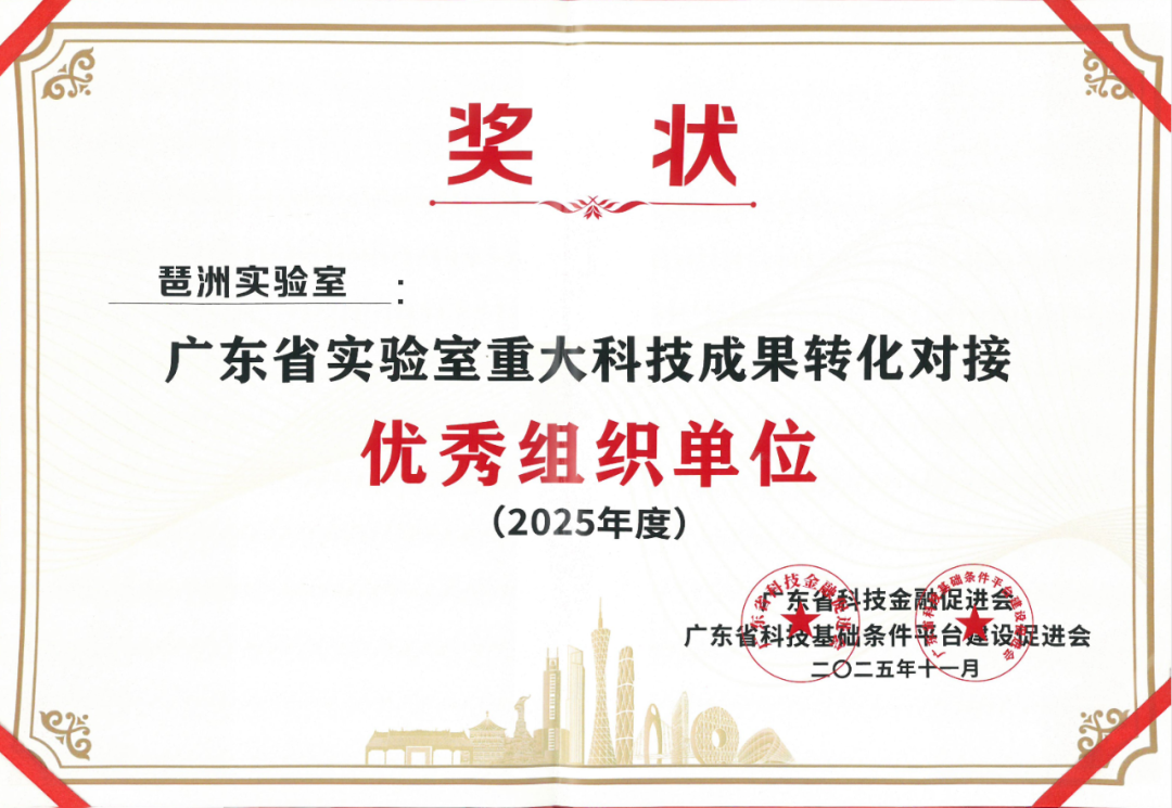 11月16日,琶洲实验室党委副书记袁传思带队参加由广东省科学技术厅指导,广东省科技基础条件平台中心与广东省科技金融促进会联合主办的2025年广东省实验室重大科技成果转化投资对接会。会议旨在推进科技创新与产业创新深度融合,汇聚人工智能、高端装备制造、新材料、生物医药等前沿领域的科研机构、企业代表及行业专家,共同见证产业发展新趋势。对接会上,琶洲实验室凭借突出的科技成果转化成效,荣获“2025年度广东省实验室重大科技成果转化对接优秀组织单位”的称号并受表彰,实验室党委副书记袁传思代表实验室领奖。