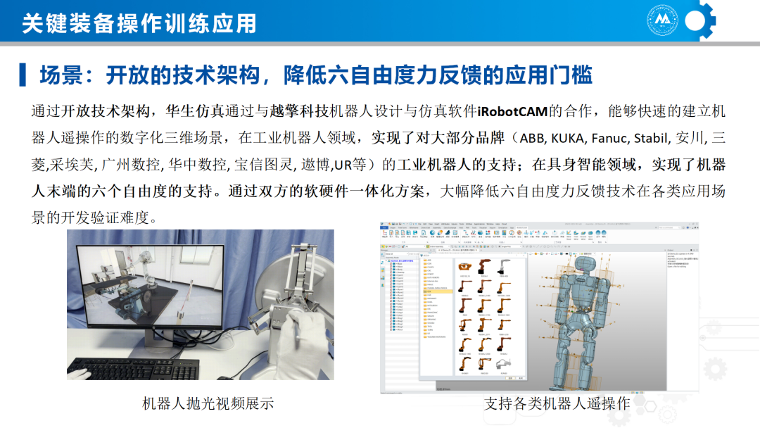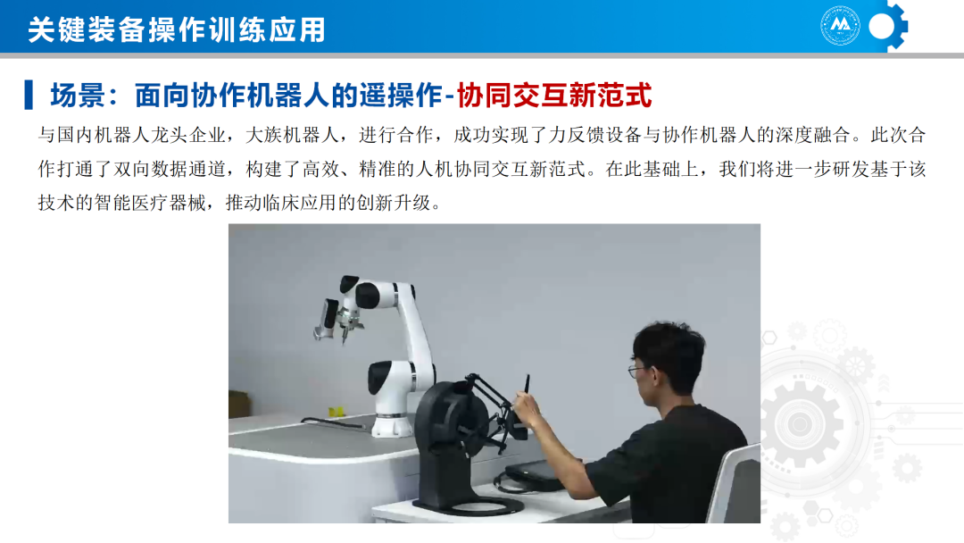 六自由度力反馈设备实现了快速精确定位、动态重力补偿、高帧频力觉刷新等关键技术,形成多项核心发明专利,面向高精度的机器人遥控操作、医疗应用场景。作为技术成果的呈现,其产品力涵盖0.01的平移精度、0.004的旋转角度、4KHz的刷新率等关键指标,已与大族激光等机器人厂商达成合作。在医疗应用方面,形成外伤换药、腹腔镜手术等医疗培训应用项目。随着人工智能与数字经济的发展,六自由度力反馈设备作为人体关节的延伸,不仅在太空站中可用于太空舱的对接,在当前的工业机器人与具身智能机器人领域,六自由度力反馈器在精细化的应用场景也将日益丰富。
