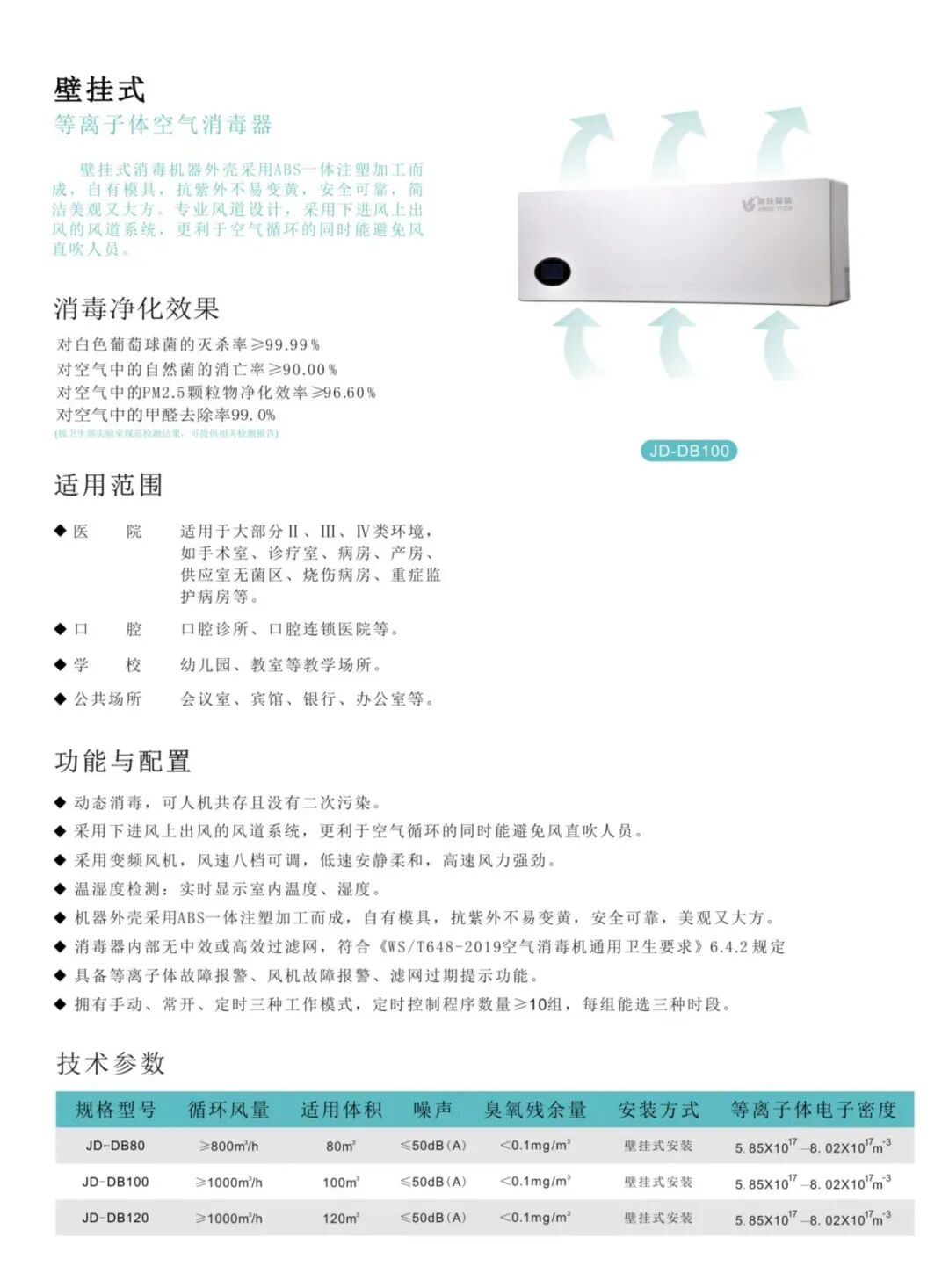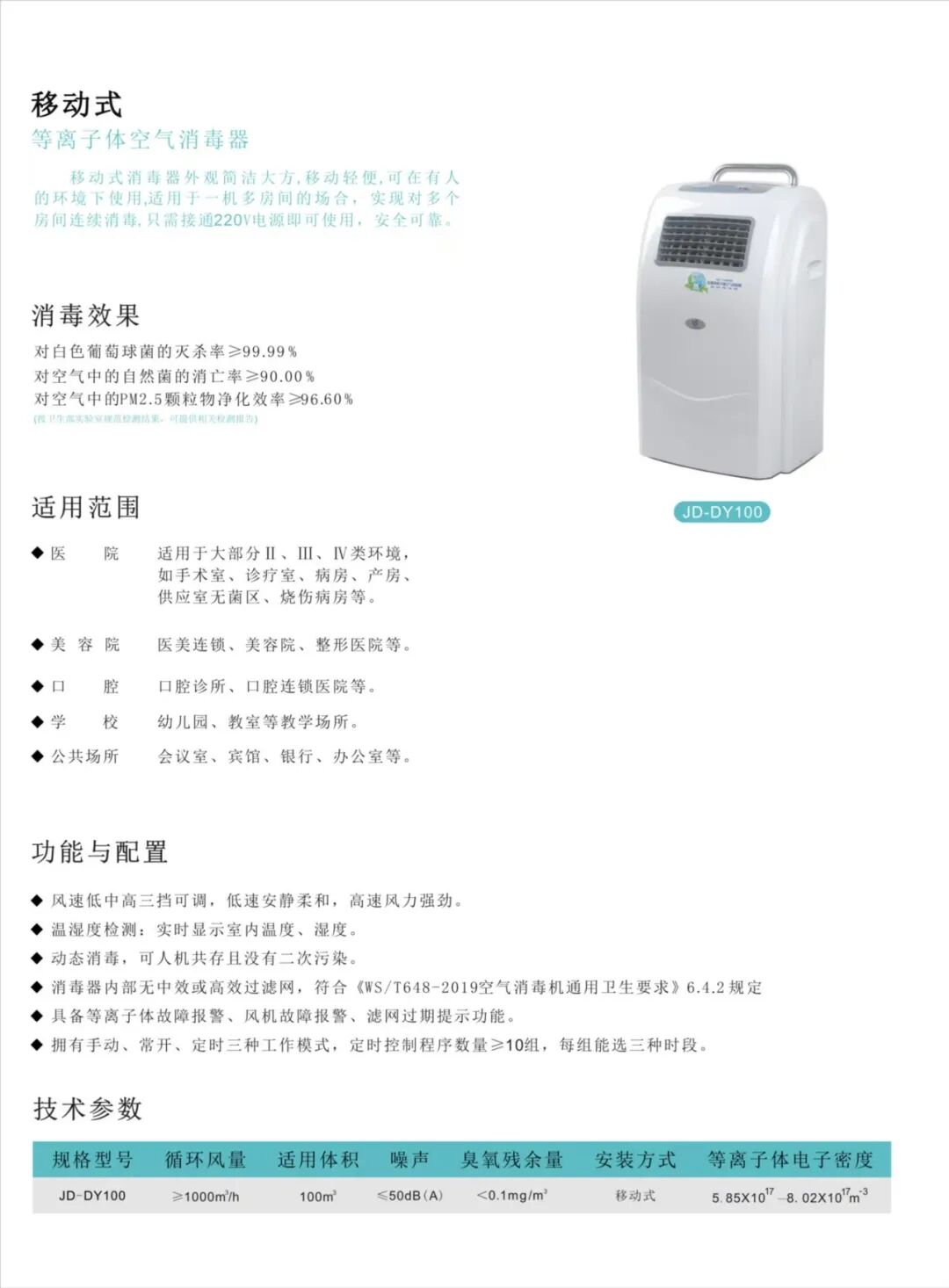 在感控消毒系列,公司拥有床单位消毒机、等离子体空气消毒机等产品。其中,JD-CXD1000-2S床单位臭氧消毒机已在广西来宾市兴宾区人民医院、新疆叶城县人民医院、广东肇庆市高要区中医院等多家医疗机构中标使用;JD-DB100壁挂式等离子体空气消毒机则应用于娄底市妇幼保健院、盐亭县卫生健康局等单位,产品性能获得临床认可。