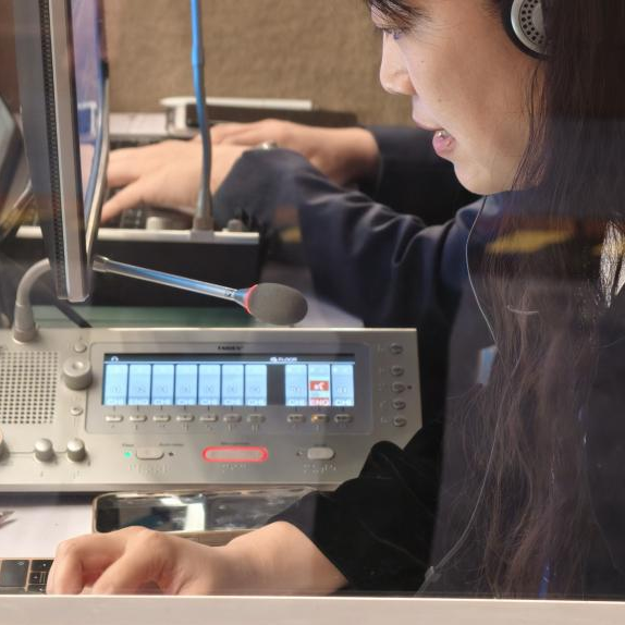 译员间配备TAIDEN全数字翻译单元,可同时处理64种语言同声传译(含原声通道),配合6.8英寸高清显示屏,为译员提供清晰、高效、安全的操作体验。
