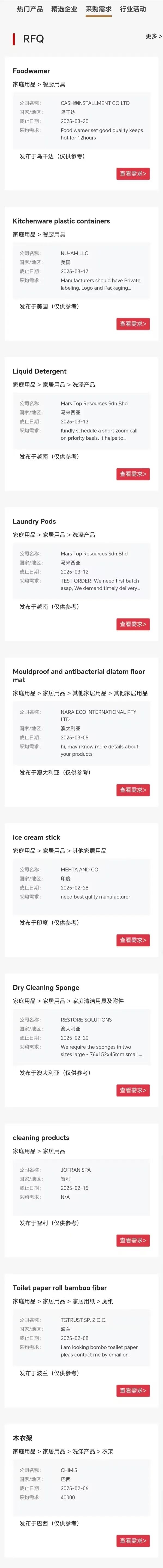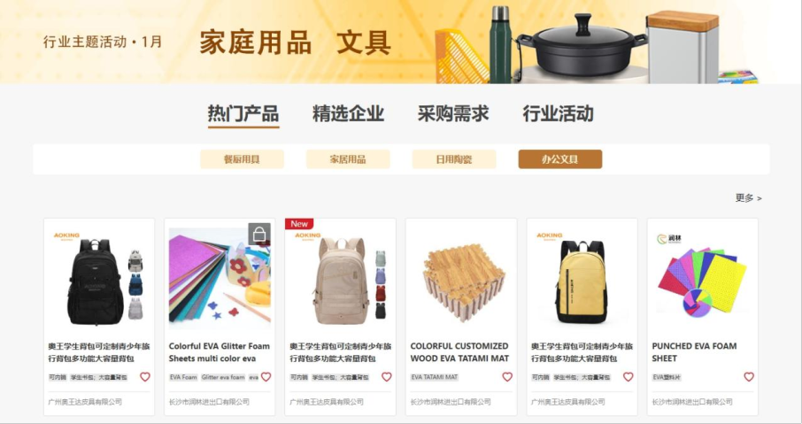 “采购需求”板块集中展示采购商主动发布的家庭用品、文具行业采购需求,便利参展商快速捕捉订单。