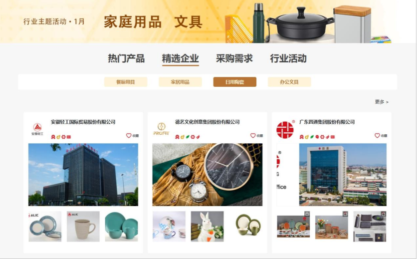 1月,我们精选广交会国际采购商众多的家庭用品及文具行业,推出家庭用品&文具专场活动,助力相应行业展客商开展线上贸易配对。