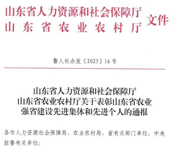 近日,省人力资源和社会保障厅、省农业农村厅联合印发《关于表彰山东省农业强省建设先进集体和先进个人的通报》,对加快建设农业强省,推进乡村全面振兴等工作中涌现出的先进典型进行通报表彰,潍坊国家农综区推进办获评“山东省农业强省建设先进集体”。