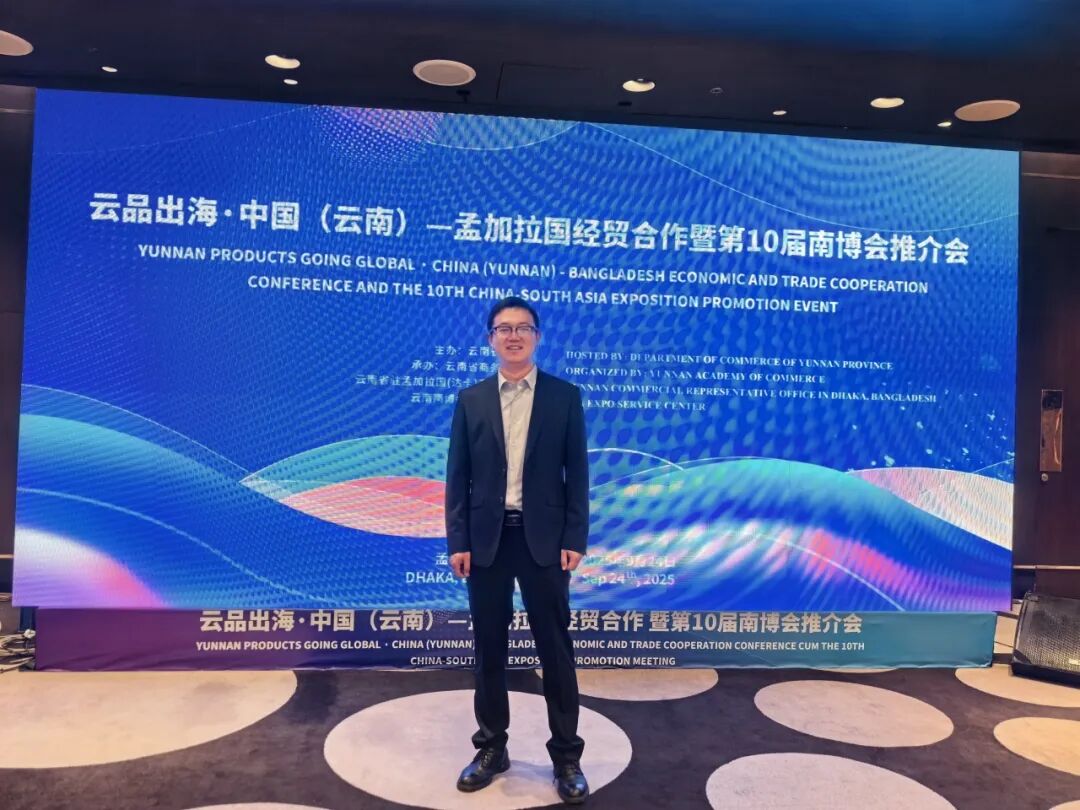 2025年9月24日下午,由云南省商务厅主办,云南省商务研究院、云南省驻孟加拉国(达卡)商务代表处、云南南博会会展服务中心共同承办的“云品出海·中国(云南)—孟加拉国经贸合作暨第10届南博会推介会”在孟加拉国首都达卡成功举办。我所作为孟加拉国首家中资律所受邀参会,投融资部主任袁优代表律所出席。